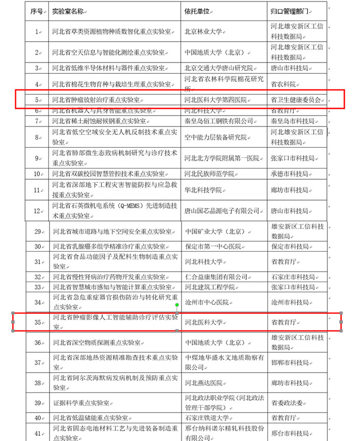 12月24日,河北省科技厅发布《关于公布2025年新建省重点实验室和省技术创新中心名单的通知》,我院成功获批“河北省肿瘤放射治疗重点实验室”与“河北省肿瘤影像人工智能辅助诊疗评估实验室”,标志着医院在肿瘤放射治疗学与医学影像学领域的科研实力获得官方权威认可,将为未来科研创新和人才培养提供强有力的支撑。